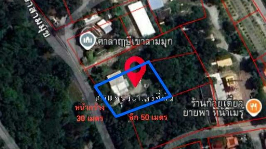 ขายที่ดินเปล่า พร้อมสิ่งปลูกสร้าง ทำเลทองอยู่บนเขาสามมุข มองเห็นวิวทะเล เนื้อที่ 436.90 ตารางวา บ้านที่อยู่ในพื้นที่ใช้สอย 60 ตารางเมตร 2 ห้องนอน 1 ห้องน้ำ 1 ห้องครัว 1 ห้องโถง ที่จอดรถ 1 คัน