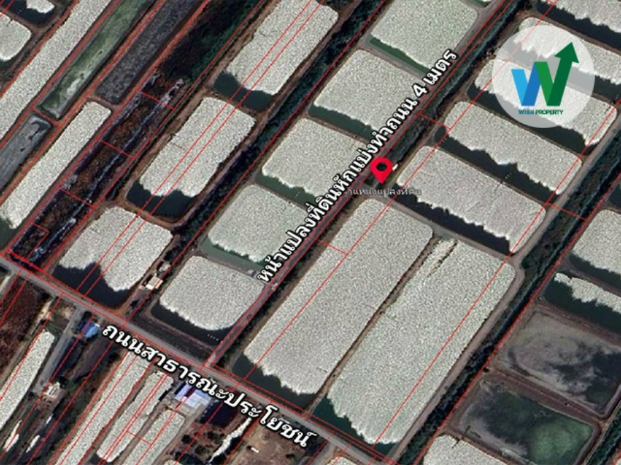 ลักษณะที่ดิน : เป็นที่ดินบ่อกุ้ง บ่อปลา เหมาะสำหรับธุรกิจบ่อตกปลา ตกกุ้ง เลี้ยงกุ้ง เลี้ยงปลา หรือร้านอาหาร หรือถมดินปลูกบ้านได้ สร้างบ้านพัก สร้างที่อยู่อาศัย หรือซื้อเก็บเป็นมรดกลูกหลาน ส่วนหน้าโฉนดแบ่งทำถนน กว้าง 4 เมตร เพื่อใช้เป็นประโยชน์ร่วมกันกับที่ดินแปลงอื่นได้
