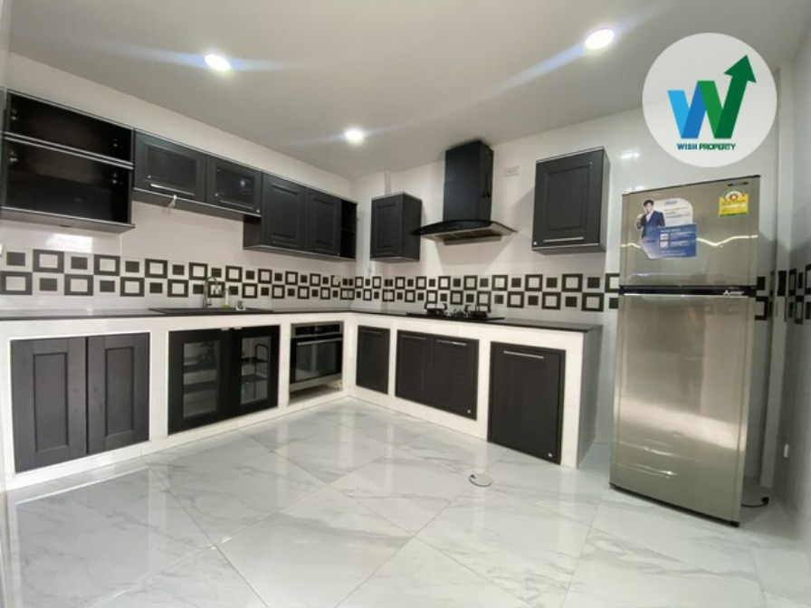 - ครัวในฝัน: ห้องครัวขนาดใหญ่ บิ้วอินสวยงาม พร้อมเคาน์เตอร์ซิงค์ เครื่องดูดควัน และ ตู้เย็น 2 เครื่อง