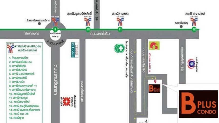ทำเล โครงการ บีพลัส คอนโด (B Plus Condo) พหลโยธิน 50 ที่ตั้ง ซอยพหลโยธิน 50 แยก 1 (ซอยร่วมมิตรพัฒนา) แขวงคลองถนน เขตสายไหม กรุงเทพฯ การเดินทางด้วยรถไฟฟ้า เพียง 750 เมตร ถึง BTS สถานีสายหยุด (สายสีเขียวเข้ม) นั่งต่อเดียวเข้าสยาม/อโศก