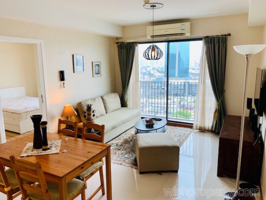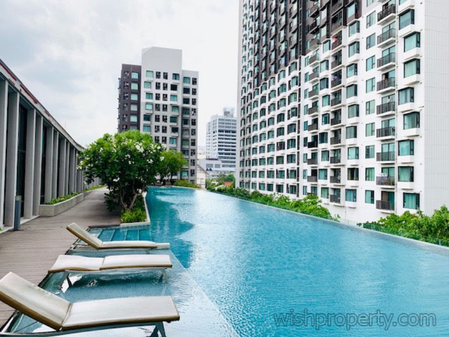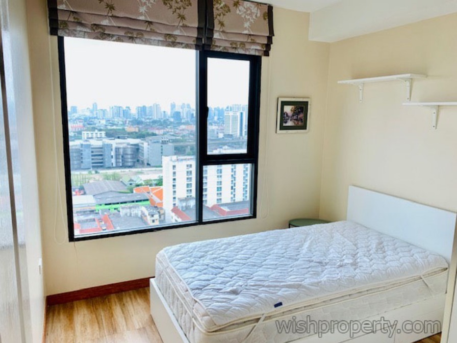 คอนโด ฟิวส์ โมเบียส รามคำแหง (FUSE MOBIUS RAMKHAMHAENG) คอนโด High Rise ใจกลางเมือง ราคาเฉลี่ยต่อตารางเมตรดีที่สุด ชั้น 20 ห้องมุม มี 2 ห้องขนาด 55.92 ตารางเมตร วิวโล่งสวย ฝั่งสระว่ายน้ำ ไม่มีตึกบัง ห้องสภาพใหม่ ตกแต่งหรูหรา ปูกระเบื้องพื้นใหม่ทั้งหมด เฟอร์นิเจอร์ครบ ได้แก่ทีวี, ตู้เย็น, เตียงนอน, ตู้เสื้อผ้า, โต๊ะแป้ง, โซฟา, เครื่องปรับอากาศและเครื่องทำน้ำอุ่น มีเคาน์เตอร์ครัวบิวท์อินพร้อมใช้งาน โครงการคุณภาพในเครือพฤกษาเรียลเอสเตท