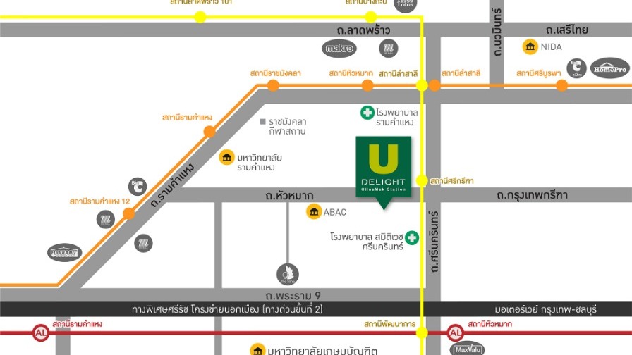 - คอนโด ยู ดีไลท์ แอท หัวหมาก สเตชั่น บางกะปิ