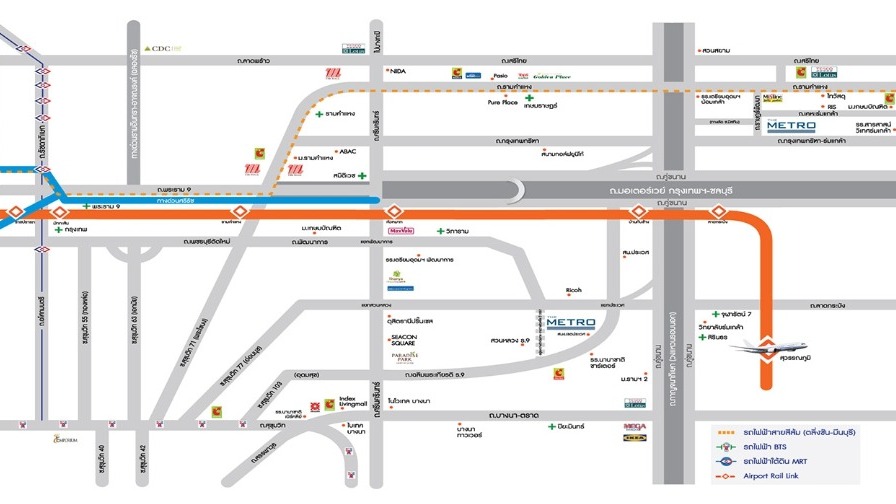 - ใกล้ห้างสรรพสินค้าซีคอนสแควร์, พาราไดซ์ พาร์ค, โรบินสันลาดกระบัง, พาซิโอลาดกระบัง, โลตัสอ่อนนุช 80, บิ๊กซีสวนหลวง, แม็กซ์แวลู พัฒนาการ