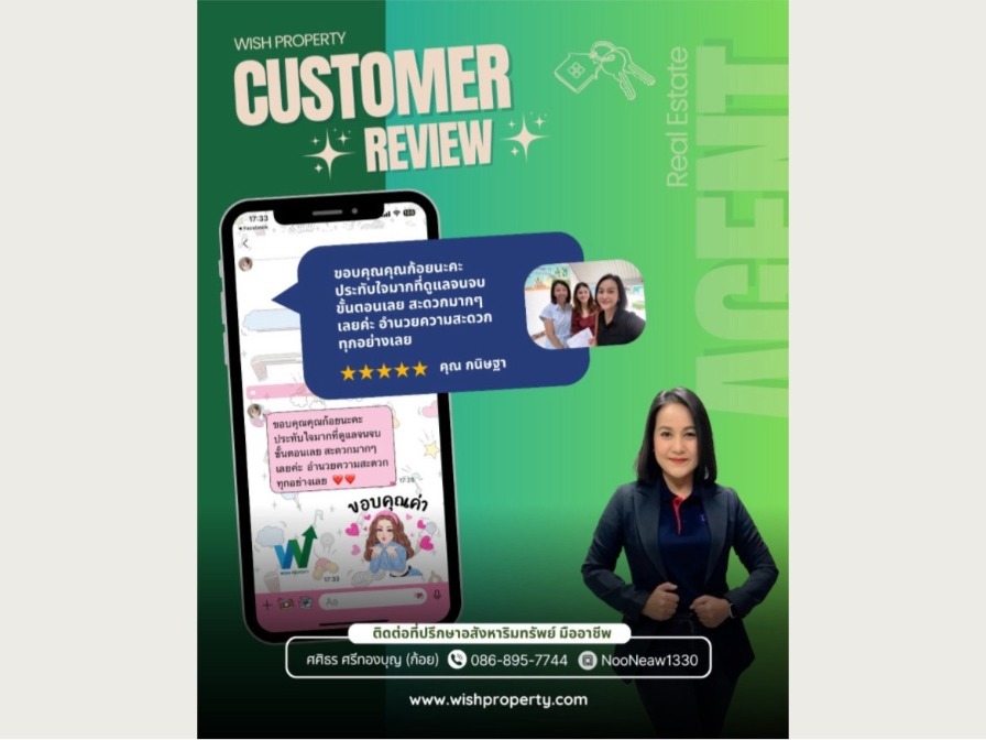 ขอบคุณคุณก้อยนะคะ ประทับใจมากที่ดูแลจนจบขั้นตอนเลย สะดวกมากๆ เลยค่ะ อำนวยความสะดวกทุกอย่างเลย