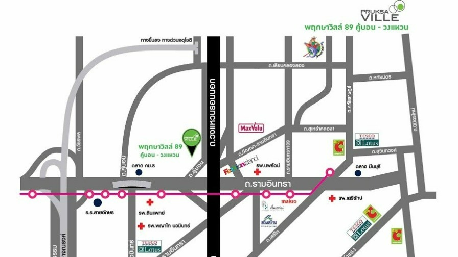 - ใกล้โรงพยาบาลสินแพทย์ รามอินทรา และโรงพยาบาลอินทรารัตน์,