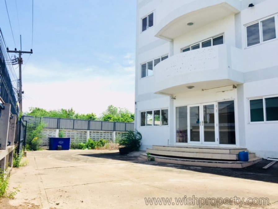 โรงงาน พร้อมอาคารสำนักงานและโกดัง บางนาตราด กม.36 ซอยวัดพิมพาวาส แปลงสี่เหลี่ยมสวยขนาด 410 ตารางวา ที่ดินติดถนน หน้ากว้าง 15.50 เมตร ลึก 70 เมตร ก่อกำแพงคอนกรีตและรั้วโดยรอบ มีสิ่งปลูกสร้างแบ่งเป็น ส่วนอาคารสำนักงานหรือออฟฟิศขนาด 4 ชั้น(รวมดาดฟ้า) พื้นที่ใช้สอย 300 ตารางเมตร มีที่จอดรถหน้าอาคาร ภายในจัดสรรเป็นห้องทำงาน ห้องประชุม ห้องสัมมนาและห้องพักพนักงาน มีห้องน้ำในตัวทุกชั้น ส่วนโรงงานและโกดัง พื้นที่ใช้สอย 575 ตารางเมตร มีพื้นที่ทำงานและชั้นลอยสำหรับเก็บสินค้า ส่วนที่ดินเปล่าด้านหลังขนาด 15.50*32 เมตร มีใบอนุญาตประกอบกิจการโรงงาน(ร.ง.4) พร้อมเลขที่บ้าน ระบบสาธารณูปโภค ได้แก่ หม้อแปลงไฟฟ้า ประปา และห้องน้ำพนักงานแยกชาย-หญิง พร้อมดำเนินกิจการได้ทันที