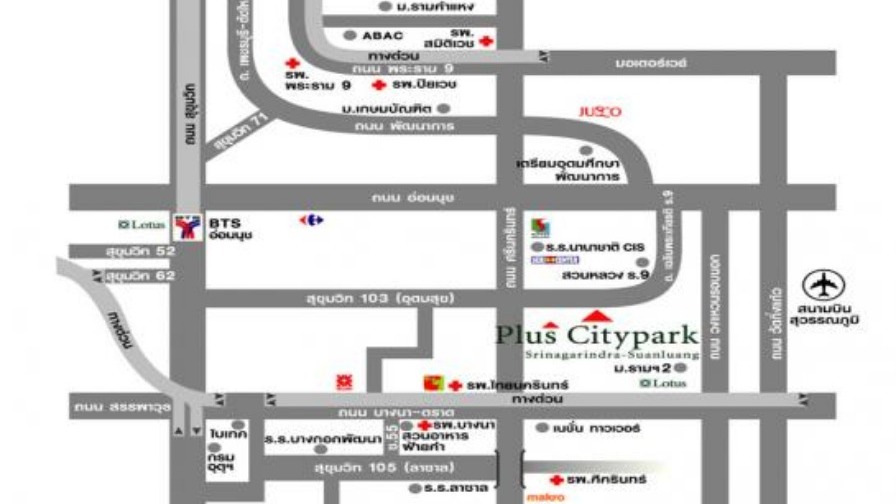 - ใกล้ห้างสรรพสินค้าซีคอนสแควร์, พาราไดซ์พาร์ค, เซ็นทรัลบางนา, บิ๊กซี เฉลิมพระเกียรติ