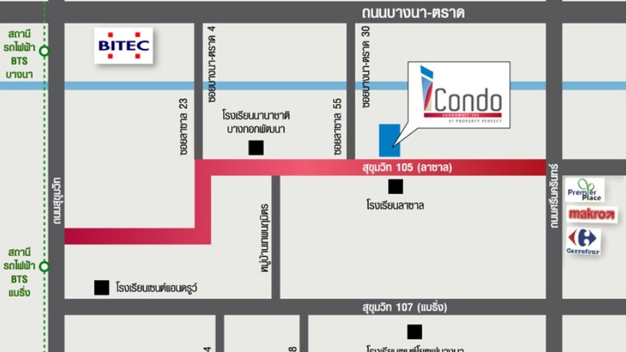 - ใกล้ศูนย์นิทรรศการและการประชุมไบเทค (Bangkok International Trade & Exhibition Centre: BITEC)
