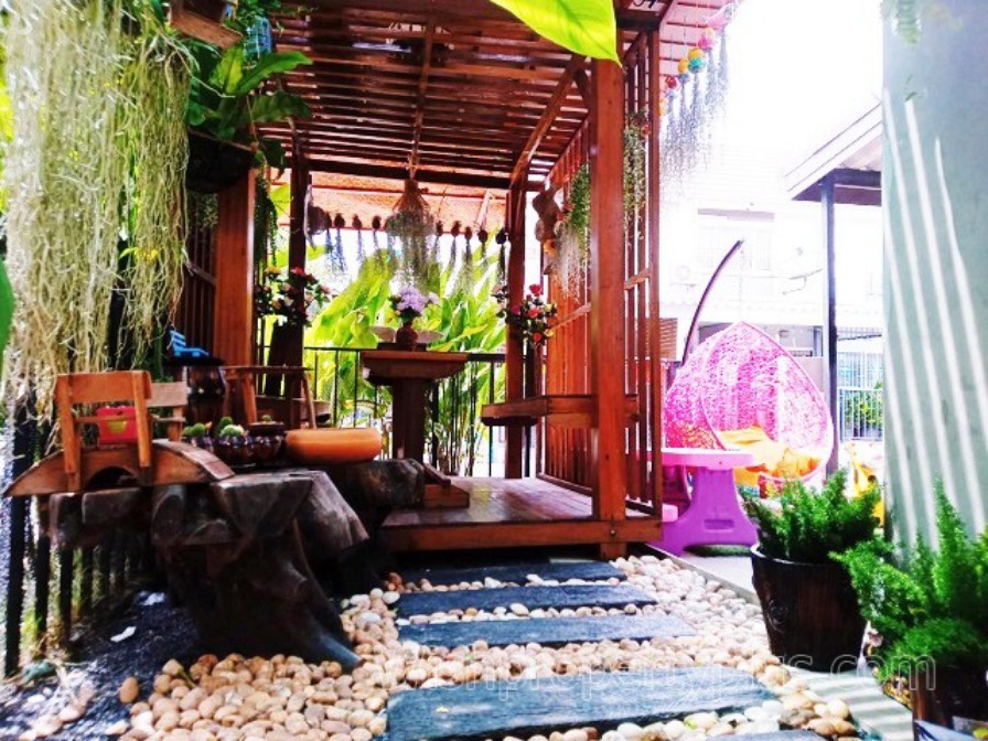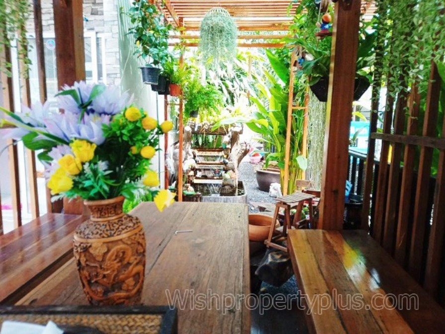 ลึก 12 เมตร ชั้นล่างและชั้นบนปูพื้นด้วยกระเบื้อง มี 3 ห้องนอน, 2 ห้องน้ำ, 1 ห้องรับแขก, 1 ห้องครัว, แอร์ 2 เครื่อง, มีที่จอดรถ 2 คัน ของแถม อาทิเช่น ถังน้ำ 700 ลิตรพร้อมปั้มน้ำ ทำกันสาดหน้าบ้านที่เป็นหลังคารถ เพื่อบังแดด และกันฝน มีซุ้มหรือศาลาทำด้วยไม้แดงอย่างดีทำไว้เป็นที่นั่งเล่น พักผ่อนตกแต่งด้วยต้นไม้หลากหลายพันธุ์ เช่น พุทธรักษา ต้นวาสนา เคราฤาษี ต้นหมากแดง เกร็ดปลาช่อน และมีน้ำตกหน้าบ้านเพื่อเสริมดวง ประจวบเหมาะกับหน้าบ้านหันหน้าไปทางทิศเหนืออีกด้วย